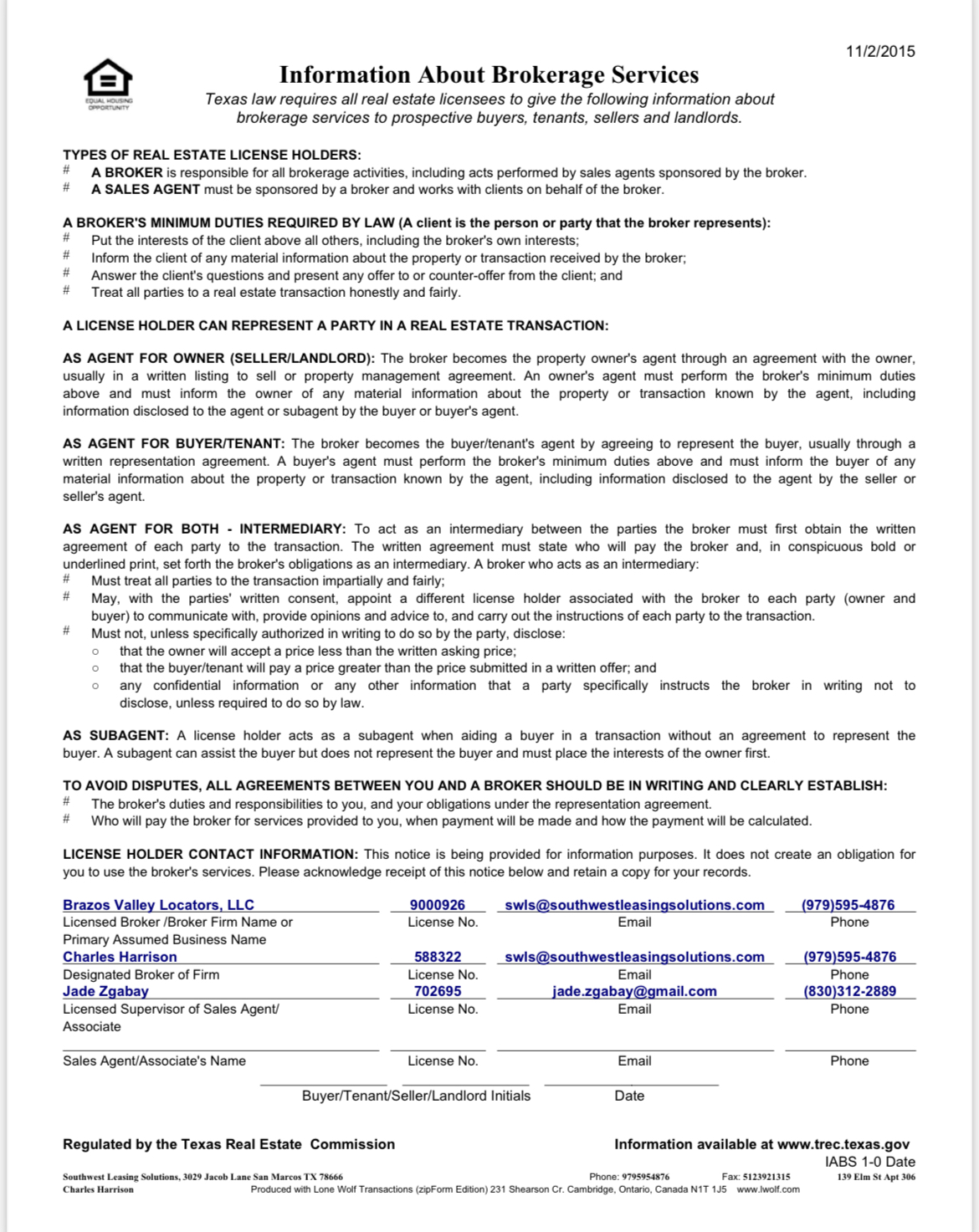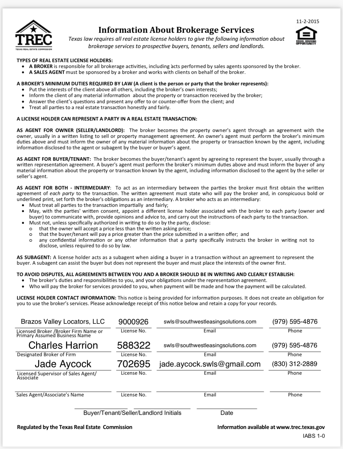 Information about brokerage services Jade Aycock